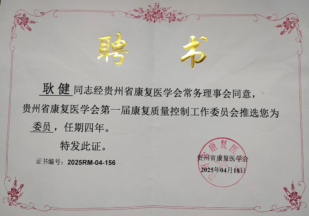 2025年4月18日,“2025年貴州省康復(fù)醫(yī)療質(zhì)量控制會(huì)議暨貴州省康復(fù)醫(yī)學(xué)會(huì)第一屆康復(fù)質(zhì)量控制工作委員會(huì)成立大會(huì)”在貴陽(yáng)隆重召開。會(huì)上,遵義醫(yī)投康復(fù)醫(yī)院兒童康復(fù)科主任耿健正式受聘為貴州省康復(fù)醫(yī)學(xué)會(huì)第一屆康復(fù)質(zhì)量控制工作委員會(huì)委員,標(biāo)志著我院在兒童康復(fù)領(lǐng)域的技術(shù)實(shí)力與質(zhì)控水平再獲省級(jí)權(quán)威認(rèn)可!
